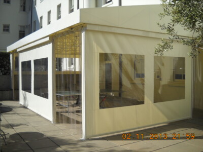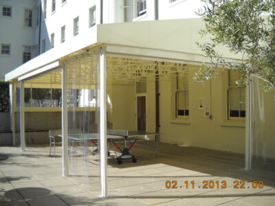Outdoor dining areas are created with custom canopies and awnings. Poolside canopies provide guests with everything they need for a good time: shade, UV protection, facilities, or sports gear. Awnings and canopies for sidewalks, segregated smoking areas, and service support areas are also available.